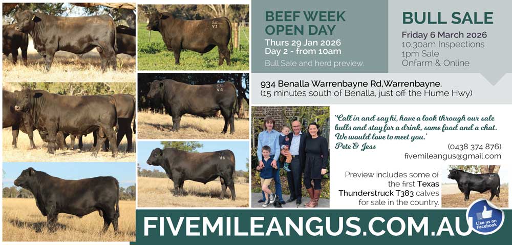 With decades of breeding cattle between us, we both come from different ends of the beef industry. Pete hails from the hills of Benambra in High Country Victoria , where for 5 generations, the Pendergast/Ross family have owned and operated Omeo Station. Selling top end weaners into the East Gippsland market. Since settling in Warrenbayne in 2012, we have continued to finish and sell weaners for the North East market. Pete’s parent still continue to run Omeo Station today and use exclusively Five Mile bulls for their temperament, fertility and soundness.